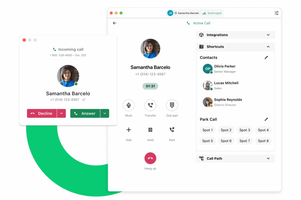 Atenda ligações do seu número telefônico corporativo diretamente no celular, computador ou aparelho VoIP compatível.